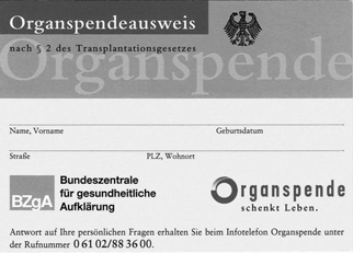 The European organ donation network Eurotransplant says that in 2010, 15,591 people in Europe were waiting for organ donation. Due to the high number of sick persons waiting for a donor organ, the topic has gained importance in many European countries. The different countries have various laws in order to regulate organ donation. On this page you will find the most important regulations, and what is more, reasons for and objections to an organ donation and a corresponding organ donor card. This card is a declaration of intent on what will happen to your organs in the case of your death. However, You can state on this card that you do not want to donate your organs. Because ultimately, organ donation is a very personal topic and everybody should make an individual and voluntary choice.
